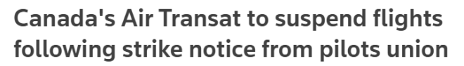 12月7日早晨,加拿大越洋航空(Air Transat)紧急宣布,为了应对代表其飞行员的工会刚刚发出的72小时授权,他们将在接下来的三天内逐步停止运营。