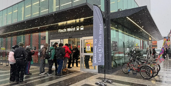 周日早上,数百名乘客和公交迷在 Finch West Station 排队,就为了抢先登上这些崭新的列车。上午还有各种小礼物派发,在 Finch West Station 的前100名乘客拿到了纪念币,沿线其他17个站点的前50名乘客也有纪念币。