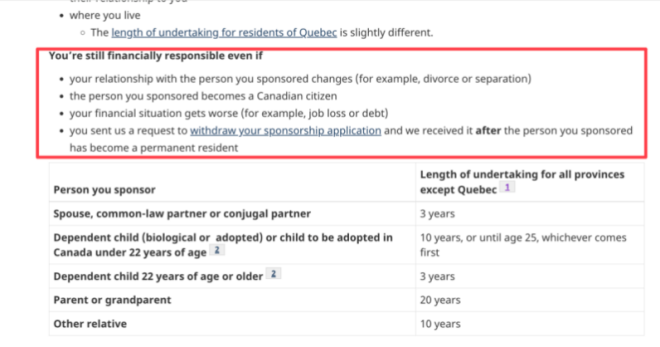 一旦你提交了配偶担保,你必须承担对方整整三年的经济责任。哪怕对方拿到身份后立刻离开你,只要他/她三年内收入不足或申请福利,政府都有权向你追讨费用。
