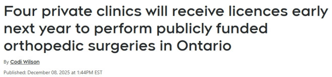 此举是福特政府计划的一部分,未来 两年将投入1.25 亿加元,用于在私营诊所大幅提升骨科手术能力,并允许这些中心为公众提供由政府出资的髋关节和膝关节置换手术。