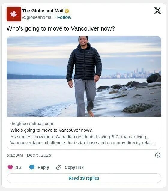 他说。对来自亚洲一线城市的新移民而言,温哥华的房价仍相对可接受,毕竟土地可永久持有;但对本地成长的人来说,这座城市正在以惊人的速度变得难以企及。