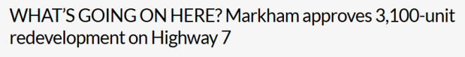 位于Hwy 7和Woodbine Ave路口附近,在Longos和Home Depot旁边的那处商业区,将进行一次大型重建。目前,该项目已经获批,这意味着这个区域将迎来超过3100套新住宅。