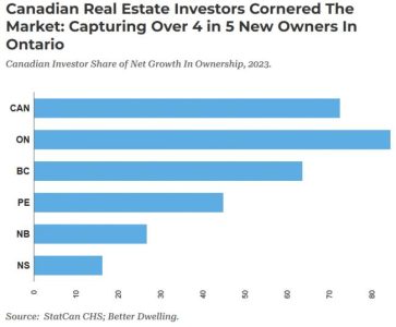 這一總數被安大略省大幅拉高,在那裡,投資者占據了 84.4% 的新增產權。令人震驚的是,該省僅有約 21.7% 的房產由投資者持有,但在新增業主中,他們卻占超過 4/5。由於安省規模最大,它極大扭曲了全國數據,使其他省份的嚴重情況看起來似乎微不足道。