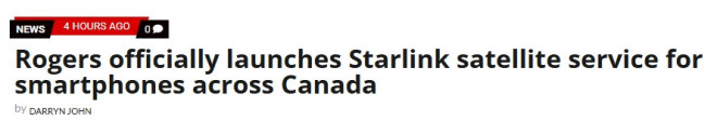 罗杰斯(Rogers)已在加拿大正式推出全国范围的“卫星直连手机”通信服务,该服务基于SpaceX旗下Starlink的Direct-to-Cell技术,让加拿大人在传统信号塔无法覆盖的地区也能保持联网。