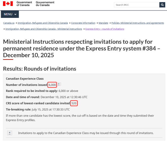 本轮共有6,000名加拿大经验类(CEC)候选人获得邀请,是自2024年7月16日以来规模最大的一次。