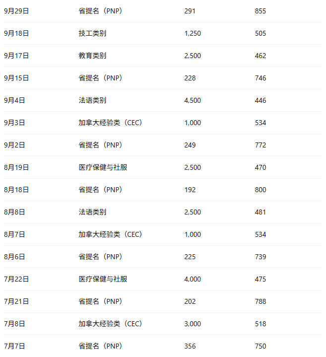 • 加拿大经验类(CEC):抽签14次,30,850份