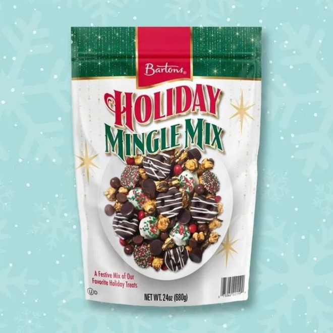 这袋 24盎司的Bartons节日混合糖果($9.59) 展示节日糖果竟然有这么多种类。里面有白色巧克力条纹的黑巧克力椒盐卷饼、牛奶和黑巧克力焦糖爆米花、牛奶和黑巧克力花生酱杯、牛奶巧克力椒盐卷饼球、牛奶巧克力小圆片、裹白巧克力撒彩糖的小饼干,还有一种叫“红宝石”的糖果,尝起来像非正牌的M&M巧克力,每个人都会找到自己最喜欢的口味。