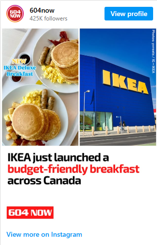 如果计划早上去宜家购物,别忘了看看宜家在 6 月份于加拿大推出的全新经济实惠的早餐,包括满满一盘的炒鸡蛋、培根、香肠、薯块与松饼,售价 仅 5.99 元。