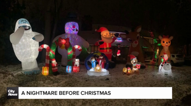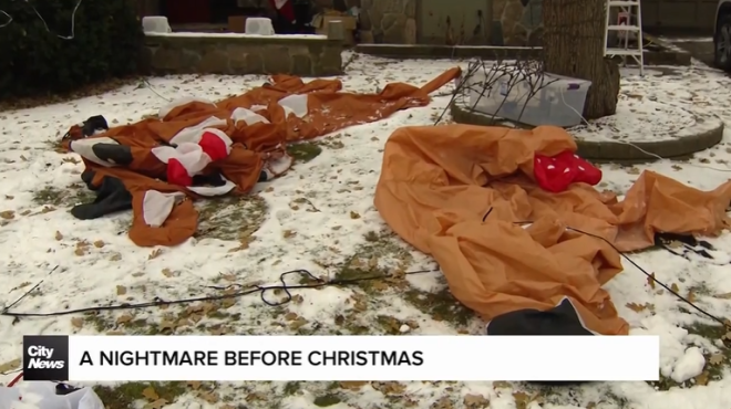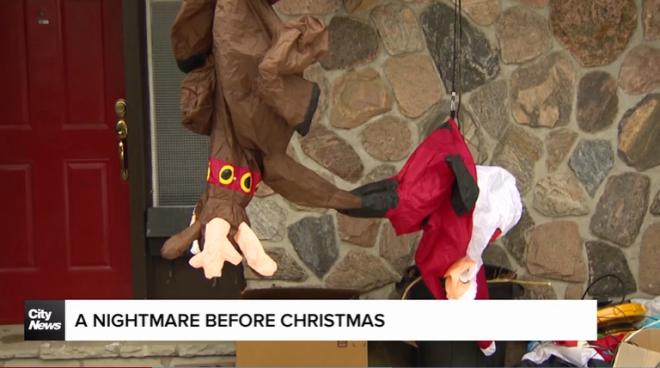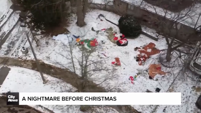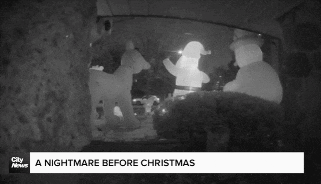 近日,多伦多士嘉堡(Scarborough)的一位房主仍心有余悸。上周日凌晨,一群头戴面罩、手持铁锤的破坏者闯入他家前院,将他们一家人精心布置的大型充气装饰砸得面目全非。