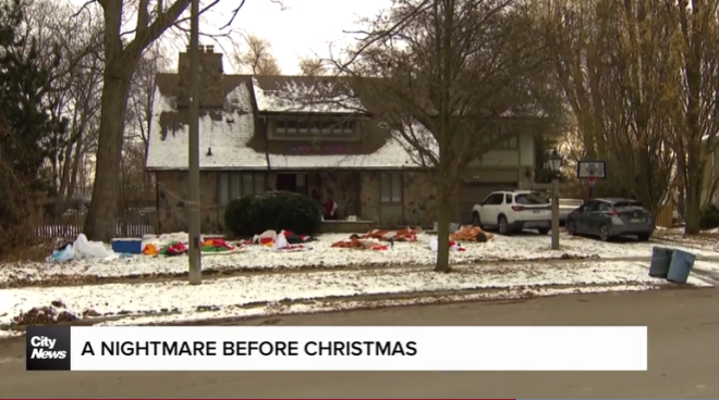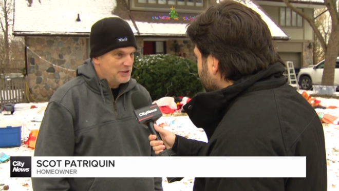 屋主Scot Patriquin住在Guildwood,是3个孩子的父亲。每年圣诞节,他们一家都会在前院打造一个超大型“圣诞主场景”:雪人Frosty、圣诞老人、红鼻子驯鹿Rudolph、雪怪、以及马槽耶稣诞生场景。