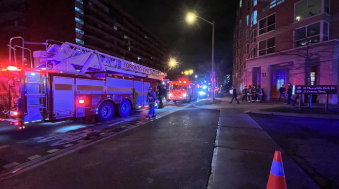这场五级火警于11月27日发生在11 Thorncliffe Park,随后蔓延至邻近的21 Overlea Blvd。因检测到高浓度一氧化碳,两栋大楼均被紧急疏散。