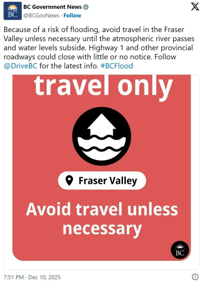 过去这一两天,整个BC省南部的都像突然失控一样,暴雨一轮接一轮地砸下来,把大温和菲沙河谷推回到那种“随时可能断联”的紧绷状态。