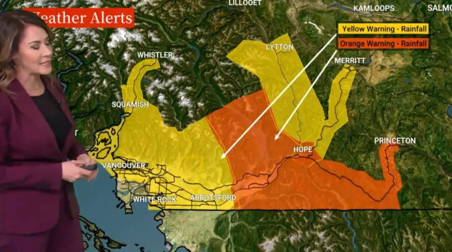 菲沙河谷和温哥华岛南部被拉进“橙色警告”。这个级别并不常见,意思是:情况会比较严重、影响范围更广、持续时间更长。