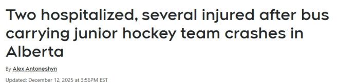 零下37℃路滑!加拿大青少年冰球队大巴出事,多人受伤