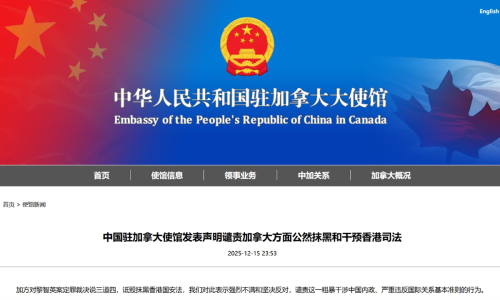 加方对黎智英案定罪裁决说三道四,诋毁抹黑香港国安法,我们对此表示强烈不满和坚决反对,谴责这一粗暴干涉中国内政、严重违反国际关系基本准则的行为。