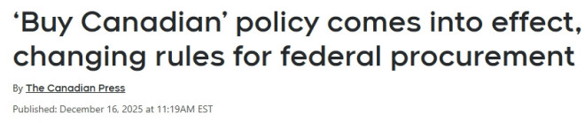 他说:“换句话说,那些在加拿大真正扎根的企业:在本地投资、雇用加拿大员工、并在国内进行创新的公司,在竞标联邦政府合同时,将获得明确的优势。”