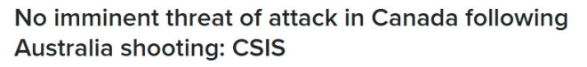 CSIS旗下综合威胁评估中心的情报简报指出:“目前没有任何已掌握的情报显示,加拿大在2025年假日季,包括与犹太社区相关的活动,面临迫在眉睫、可信的具体威胁。”