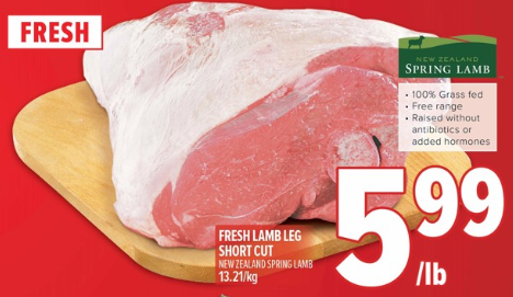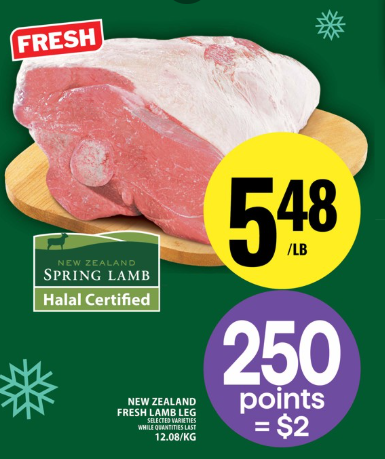 新鲜羊腿$5.48/lb,返250积分=$2!