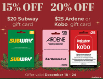 - $25刀Ardene或Kobo礼卡20%OFF!
