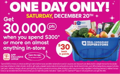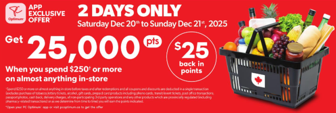 消费满$250,返25,000积分=$25(限时2天:12月20-21日)!