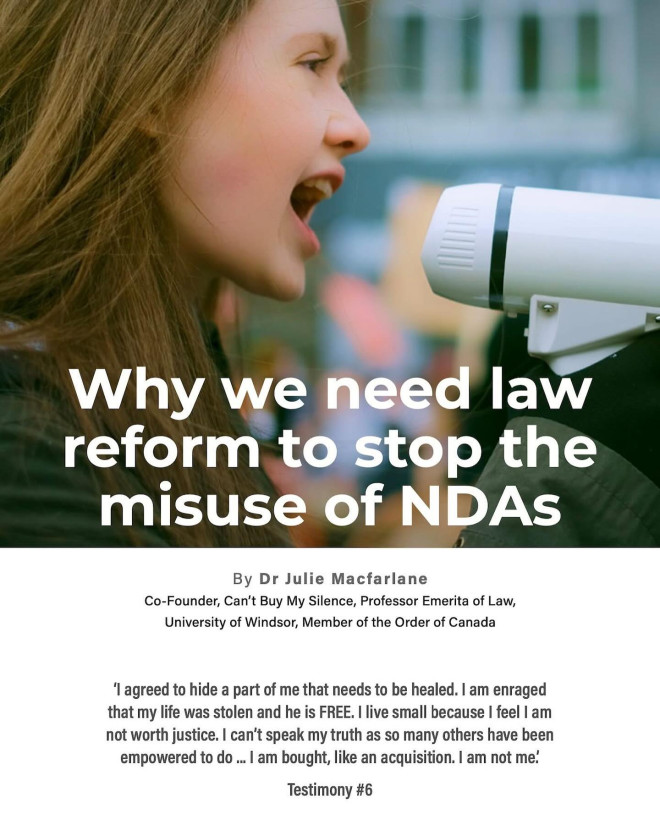 今年6月,加拿大参议院对《不能用金钱买沉默法案》(Can’t Buy Silence Act)进行了首读。该法案拟在接受联邦资金的机构中,限制NDA的使用范围及其法律效力。