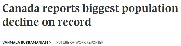 人口在今年第三季度减少了约7.6万人,这是自1940年代有统计记录以来最大的一次季度人口下降,主要原因是联邦政府为抑制规模而实施的一系列重大政策调整。
