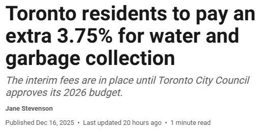 多伦多居民,2026年又要为2大“刚需服务”多掏钱了。