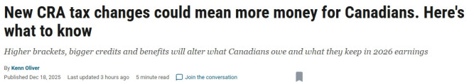 如果你在加拿大打工、上班、报税,2026年很可能是一个“税负稍微松一口气”的年份。