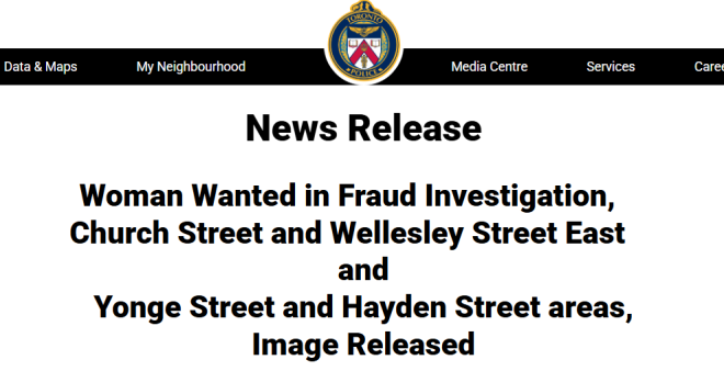 本月早些时候,12月10日,多伦多警方发布新闻稿,呼吁公众协助寻找一名女子。该女子涉嫌在市中心两家水疗馆涉及两起诈骗案件。