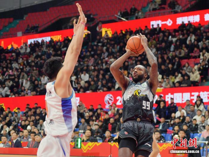 吉林队99号外援阿普森(黑衣)正在跳投。 金乔 摄