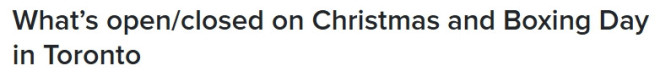 节临近,多伦多进入“假日模式”。商场、银行、超市、政府机构大量关门或缩短营业时间,不少人一不留神就白跑一趟。