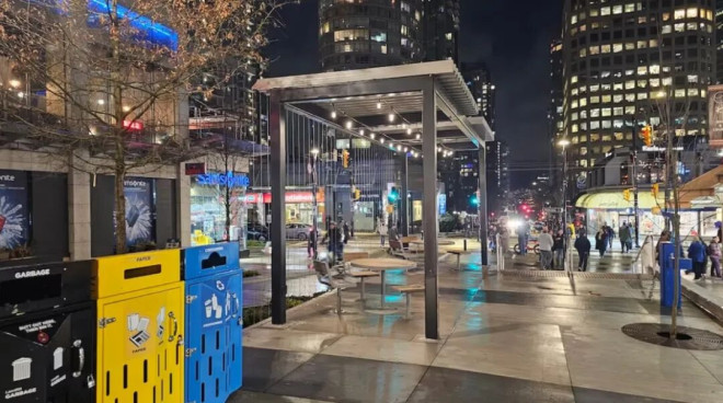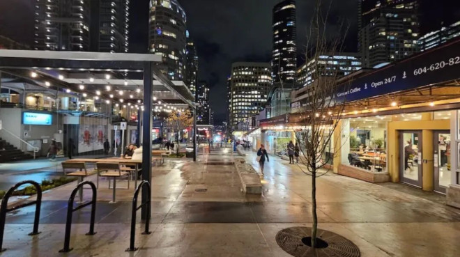 而本周刚刚完工并开放的部分,则是位于交叉口以南、Bute 街 Robson 街与后巷之间的永久无车街道广场。