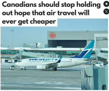 “很遺憾,在加拿大乘飛機出行註定是昂貴的,這是自然條件決定的結果,”他說。