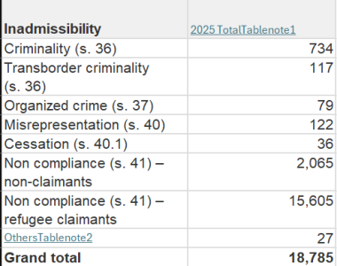 加拿大在2024年驅逐了18,000人,這是自2006-2015年斯蒂芬·哈珀政府以來的最高數字。