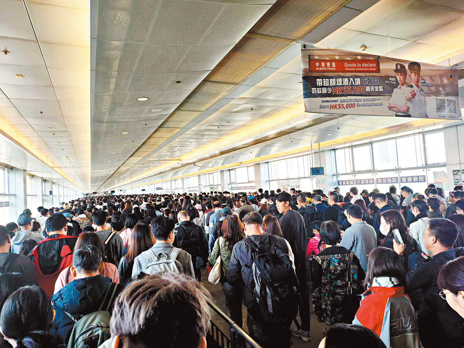 昨日中午時分,落馬洲口岸擠滿北上人潮。