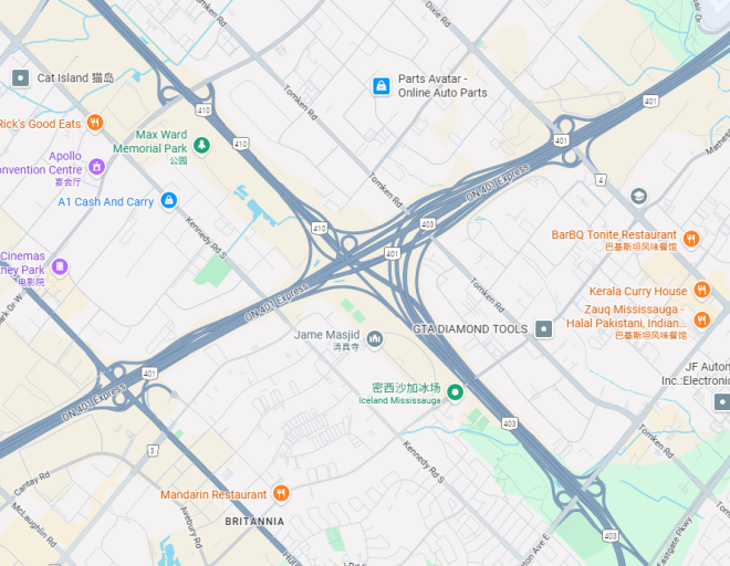 一个在密西沙加,401、403和410三条高速交汇处