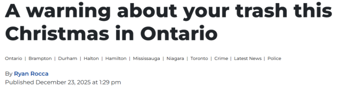 安省警方(OPP)近日发布紧急提醒,呼吁公众在假日期间务必注意处理垃圾的方式,以免成为犯罪分子的目标。