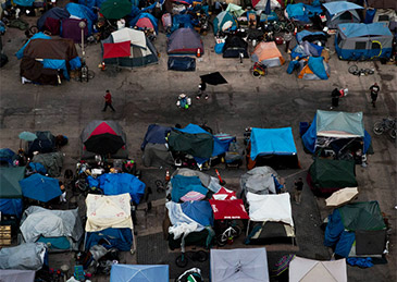 美国加州,洛杉矶市中心的无家可归者帐篷 视觉中国