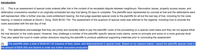 法院最终裁定,其中一方除了承担赔偿责任外,还需支付$33.5万元的特别诉讼费用。