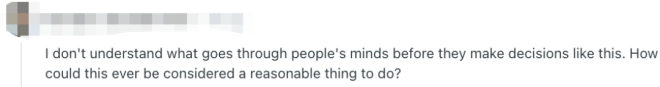 另一条评论则从常识角度表达困惑:“我真的无法理解,人们在做出这种决定前脑子里在想什么?这怎么可能被认为是合理的行为?”
