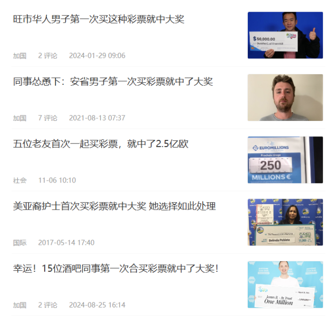 这位30岁的年轻玩家并不是唯一一次尝试就中奖的人。
