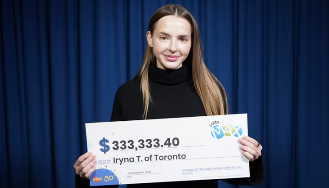 多伦多居民Iryna Tereshchuk在2025年11月25日的Lotto Max开奖中赢得了333,333.40加元的Maxmillions奖,实现了她的梦想。