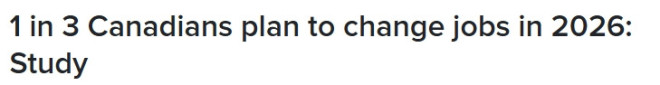 Robert Half于11月和12月对近2000名在职及求职中的加拿大人进行了调查,结果发现,三分之一的受访者计划在上半年换工作,这一比例较2025年7月上升了7个百分点。