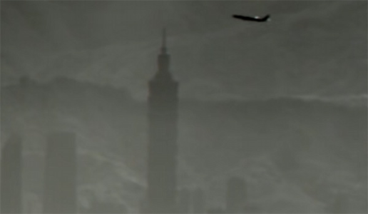 东部战区开展“正义使命-2025”演习,解放军无人机俯瞰台北101大厦 视频截图