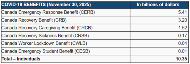 其中大部分资金来自加拿大紧急救助金(CERB)和加拿大恢复补助金(CRB)。后者是为疫情期间被迫停工、又无法领取失业保险(EI)的人提供的每月2,000加元补助。