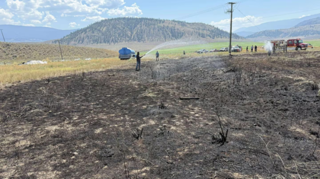消防队、BC Hydro工作人员和当地牧场主共同使用4800加仑水才扑灭了火灾。