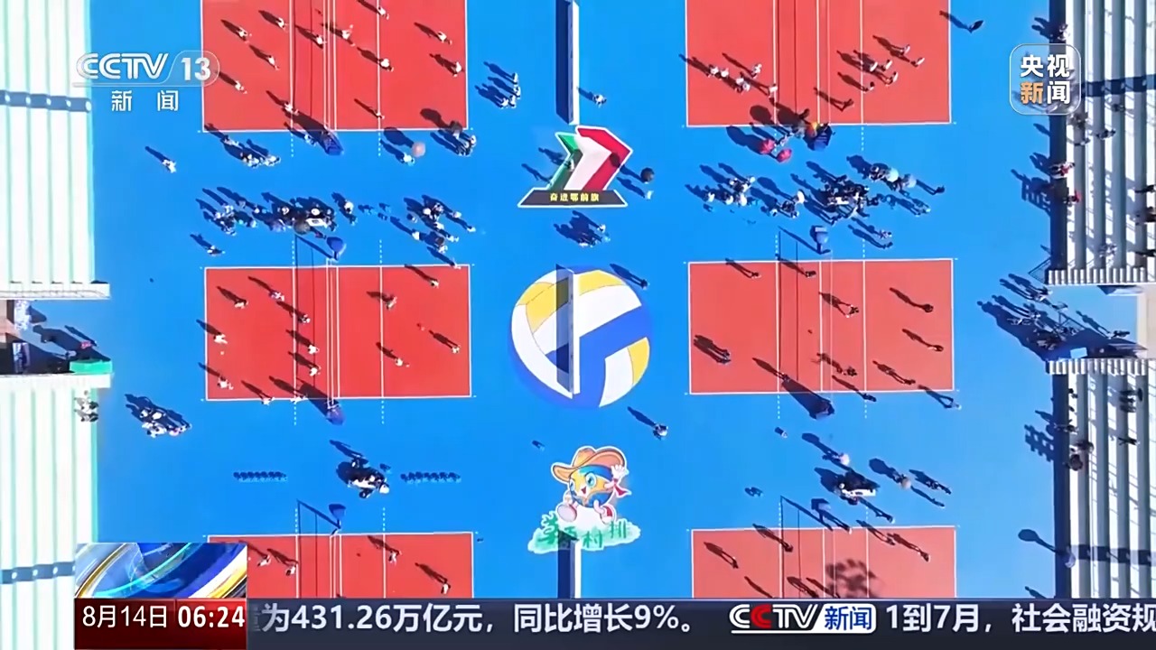 在内蒙古,草原“村排”点燃起这个夏天的火热。8月12日,2025年“鄂尔多斯草原村排业余排球赛”在内蒙古鄂托克前旗落幕。5天的比赛,40支参赛队完成了100场对决,不仅奉献了精彩的排球赛事,也激活了乡村经济。