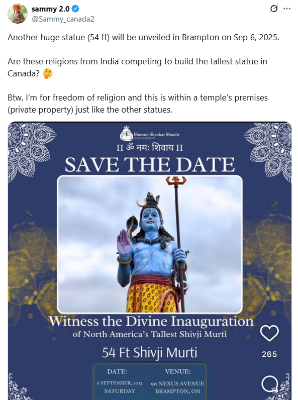 这不禁让人怀疑,这些印度宗教是不是在加拿大搞竞赛?抢着建造最高神像?