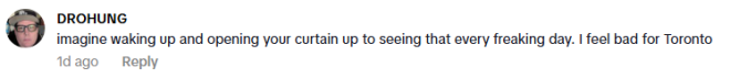 “想象一下,每天醒来之后,打开窗帘,看到这可怕的玩意。我真是替多伦多感到糟糕。”