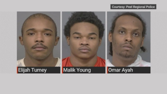 警方称,宾顿20岁的Elijah Turney和Malik Young,以及多伦多25岁的Omar Ayah,均被控一级谋杀罪。